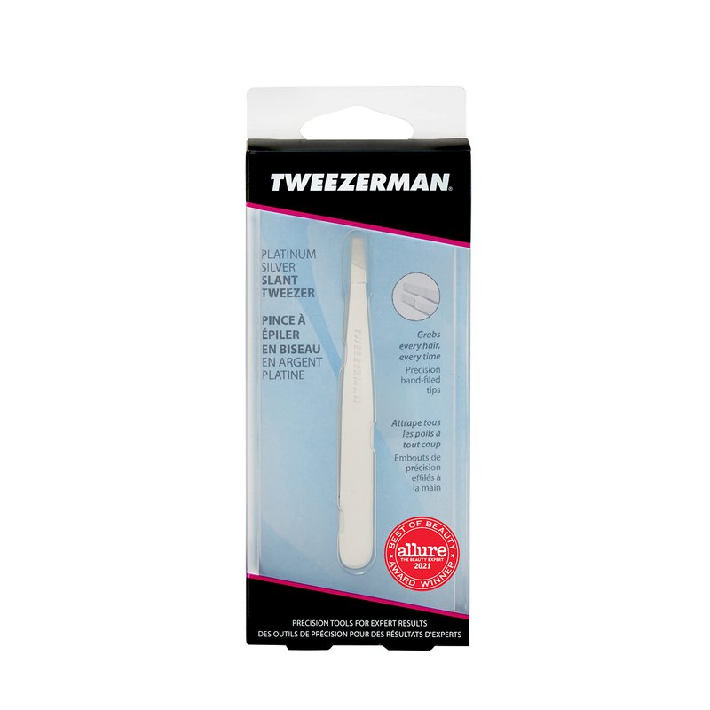 Tweezerman Stainless Steel Slant Tweezer - Eyebrow Tweezers for Women and Men (Platinum Silver)