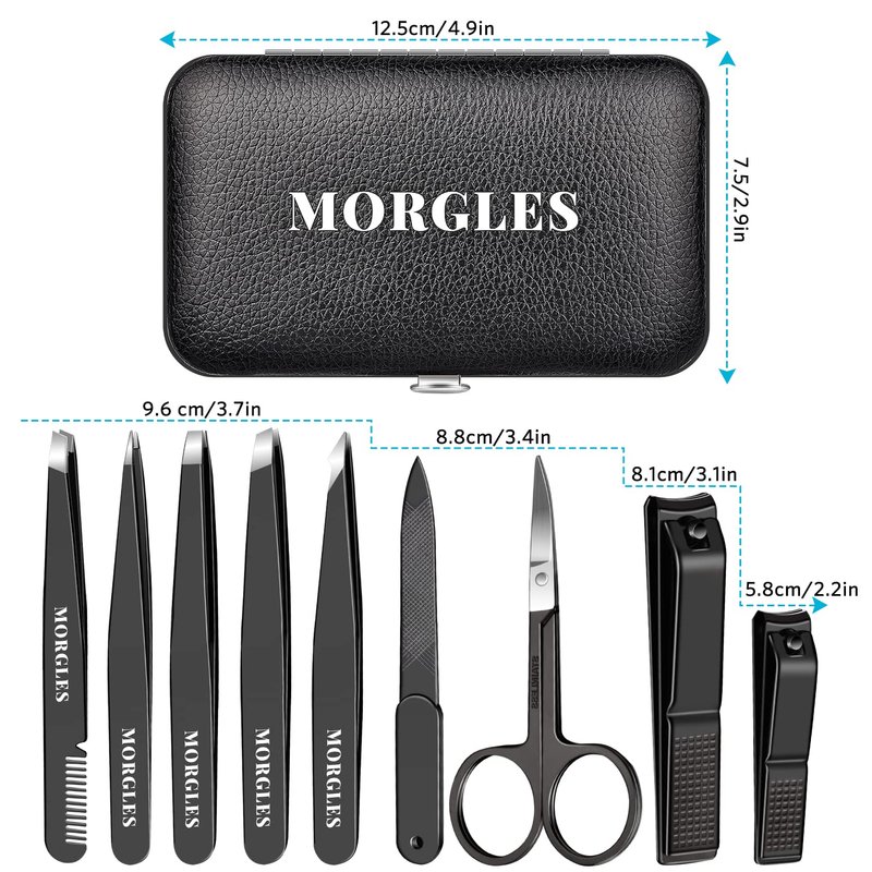 Tweezers Set and Nail Clippers, Tweezers Set for Men, MORGLES 9PCS Professional Stainless Steel Tweezers No Gaps with Leather Travel Case