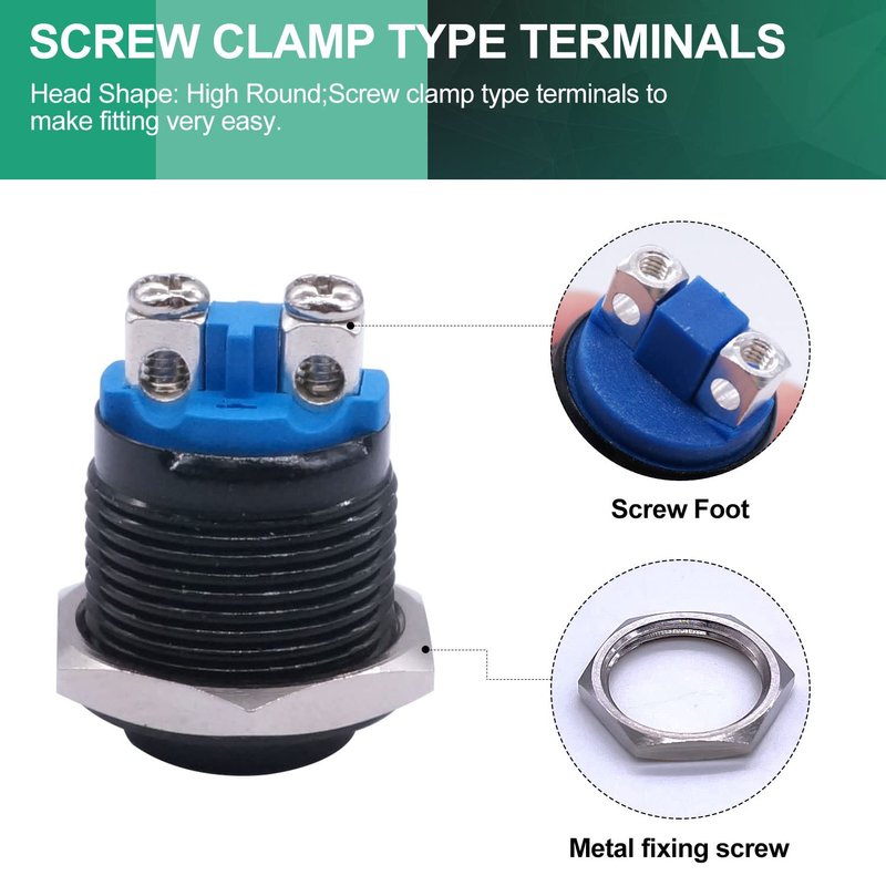 - Head Shape: High Round;Screw clamp type terminals to make fitting very easy.
