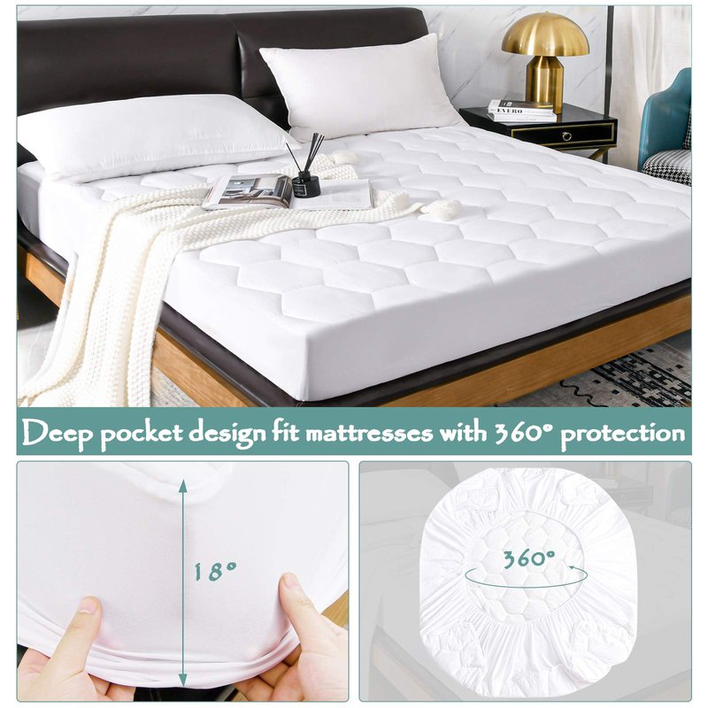 - 🍀【Breathable Mattress Pad with High Quality】The hollow alternative fluffy filling allows air freely to circulate. And the natural cloth by strict process and inspection comes out the deluxe quality, keeps the same shape after 100+ times machine washing