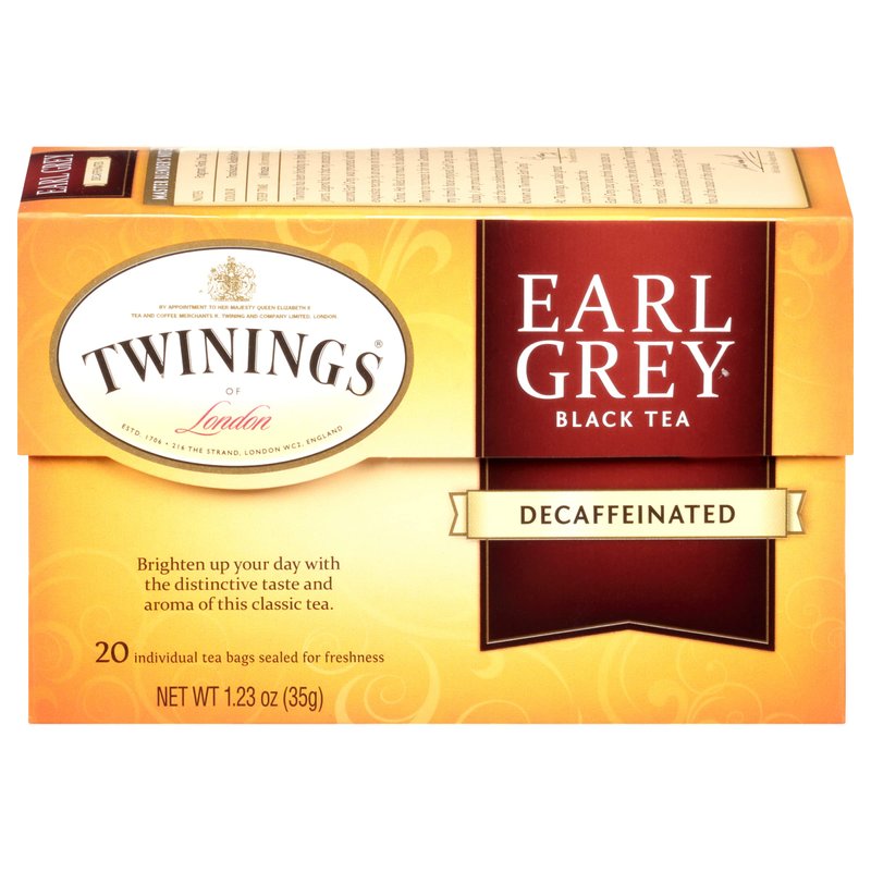 Twinings Earl Grey Decaf Black Tea - Refreshing Earl Grey Decaffeinated Tea Bags with the Flavor of Bergamot and Citrus, Individually Wrapped Decaf Tea Bags, 20 Count