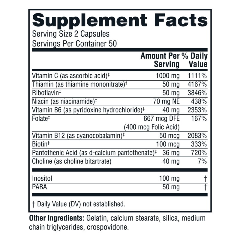 Twinlab Stress B-Complex Caps - Complete B-Complex & 1000 mg Vitamin C - Energy Support Supplement with Vitamin B12 and B6-100 Capsules