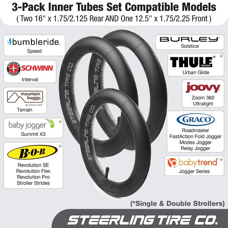 Two 16'' x 1.5/1.75 & One 12.5'' x 1.75/2.15 [3-Pack] Extra Thick Inner Tire Tube for BOB Revolution Strollers & Stroller Strides - Best BOB Stroller Tire Replacement Set by Steerling Tire Co.