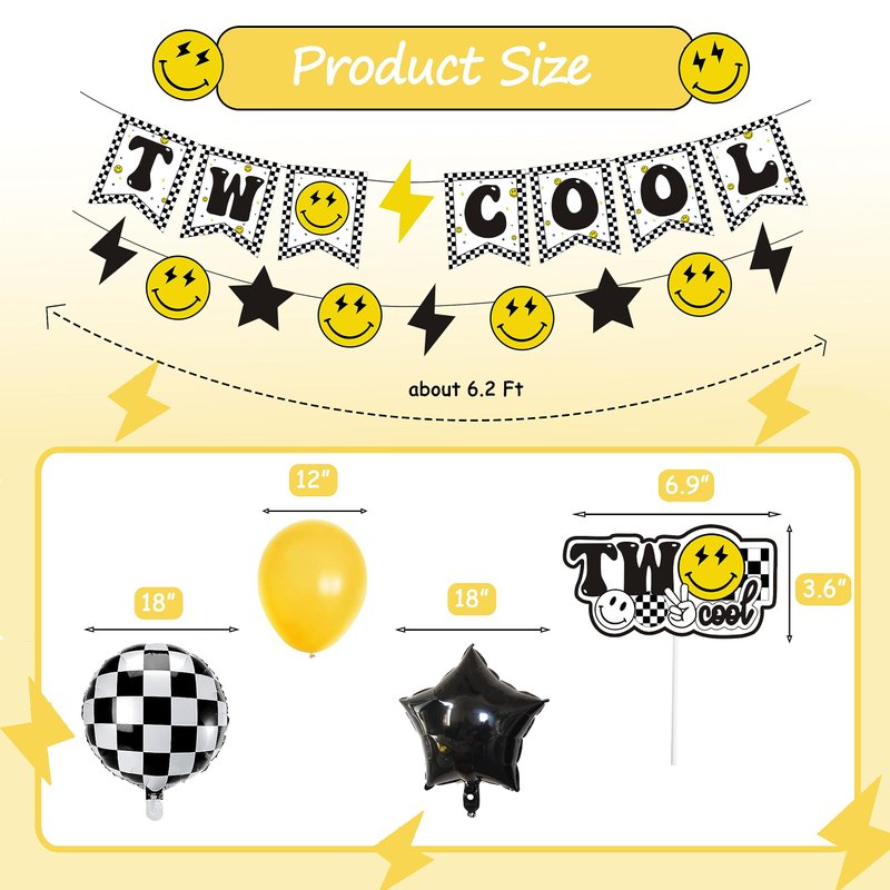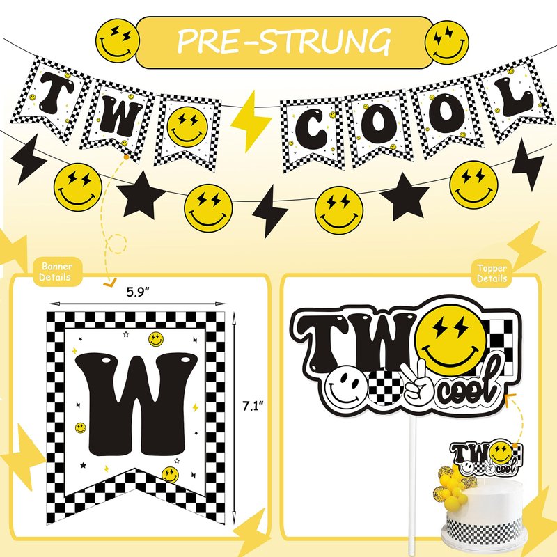 - 【Function】Perfect for Two Cool smley face theme 2nd birthday party celebration, two cool dude Second birthday theme party photo prop etc.