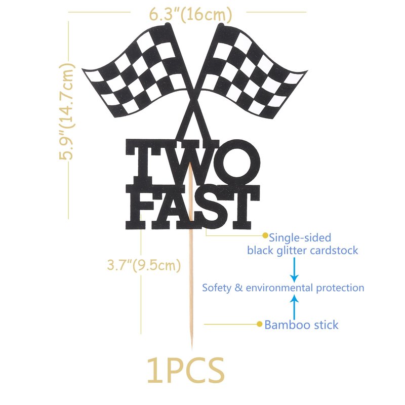 - Special Design: We are designed the checkered flag element and the particularly eye-catching 'TWO FAST', a fun and stunning way to make your cake, flower arrangement or centrepiece stand out! Definitely the perfect accompaniment to your baby's birthday party