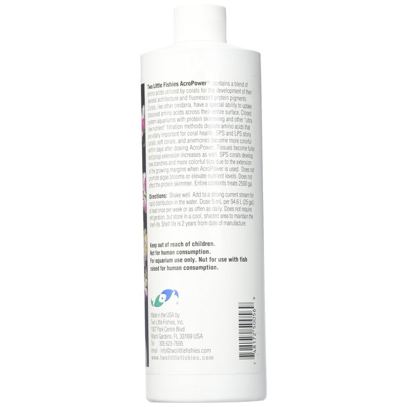 - Two Little Fishies AcroPower supplies amino acids that corals need to build their skeletal architecture