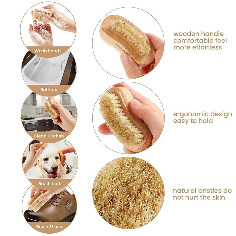 Two-side Wooden Nails Brushes for Fingers, Natural Wood and Bristle Cleaning Acrylic Nail Art Brush, Fingernail & Toenail brushes for Women, Men, Girls, Manicure Pedicure Nail Scrubber Home & Salon