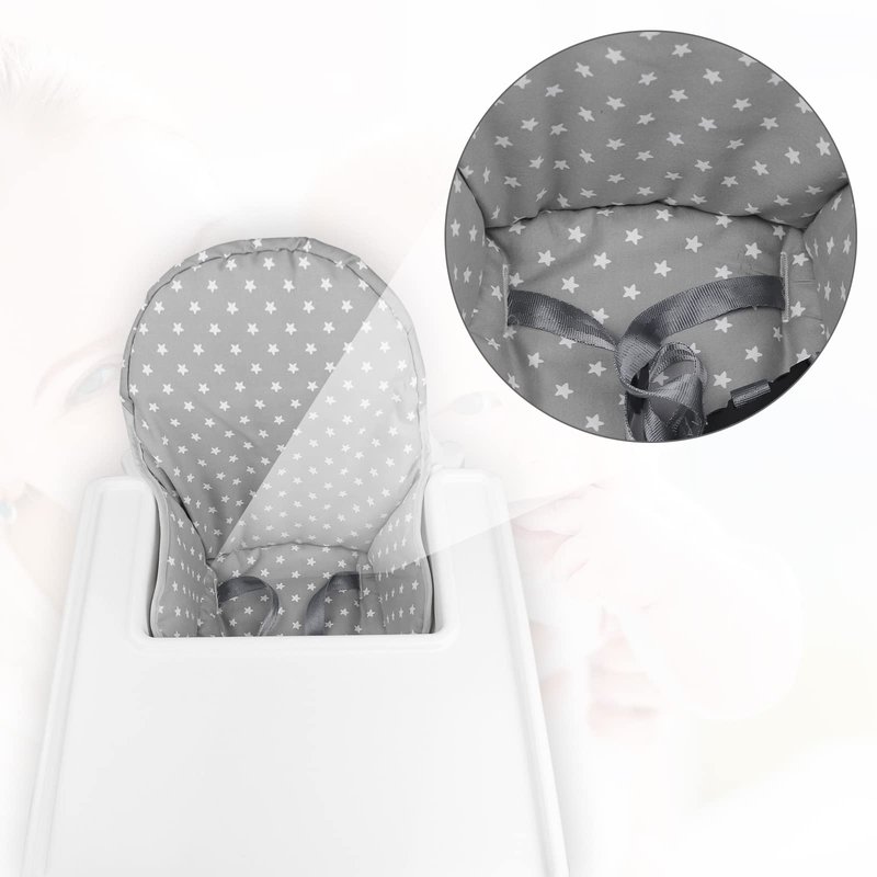 - 2:Fashion gray star design high chair cushion which catch your baby's eye looks good.The colors are bright and attractive.