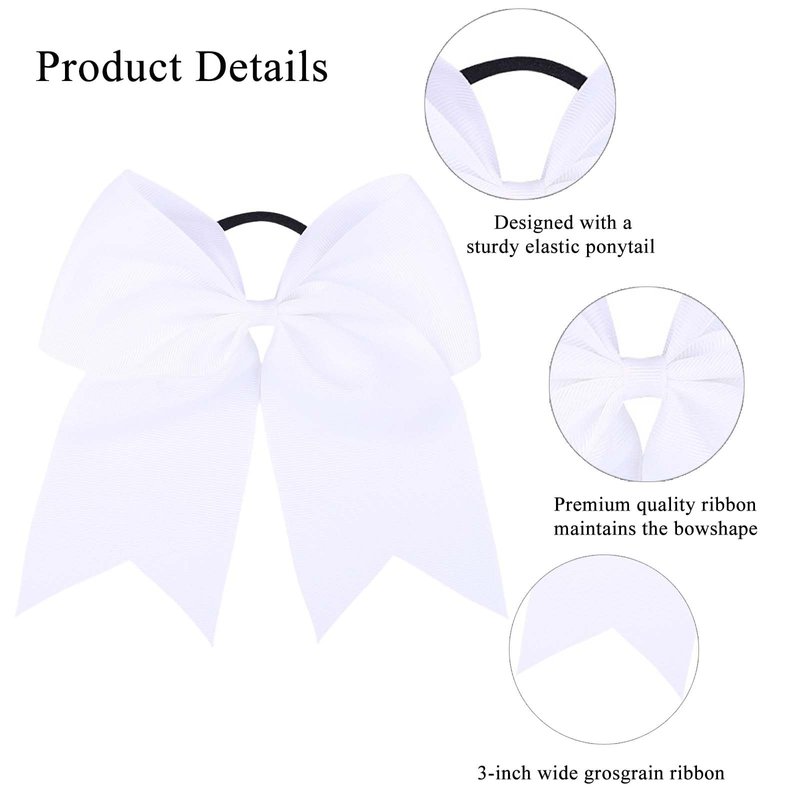 - Suitable for cheerleading: The school white bows for girls hair can be easily attached to a ponytail with a wrapped elastic hair tie, allowing you to jump and cheer to your heart's content without fear of losing your bow. A good option for cheerleaders ,cheer camp, practice, or every day use