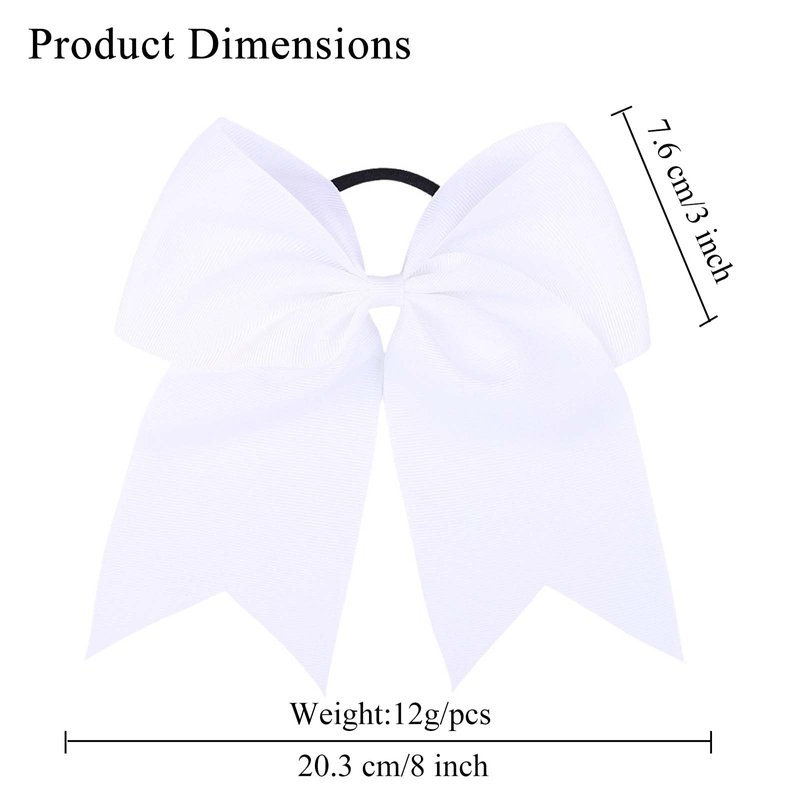 - Package Content: 2 pcs jumbo 8 inch cheer hair bows are made of high quality 3 inch wide grosgrain ribbon with elastic ponytail holder, 100% handmade cheer bows with beautiful shape, the workmanship is excellent, the bow and the hair ties are well glued, girls bows for hair is a favorite hair accessory for all teen girls