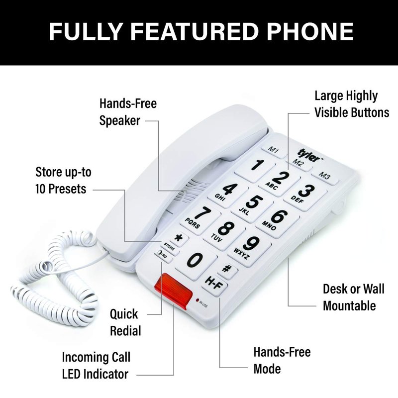 Tyler TBBP-3-WH Big Button Corded Phone with Speakerphone for Seniors and Ease of Use