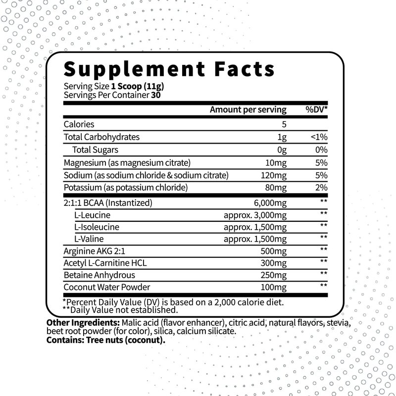 The Optimum Blend For A Great Source of Aminos. Our BCAA is vegan friendly, Keto Friendly, gluten free and 3rd party tested by iso-accredited laboratories. Every scoop is packed packed with 6,000 mg of BCAA's and has 30 servings in each bottle.