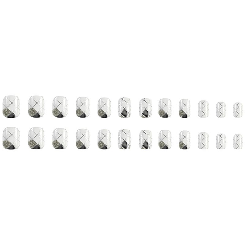 24Pcs Rhombus Press on Finger Nails With White Grey Glitter Designs,Silver Line Fake Nails,Artificial Fingers,Party, Nail Salon, Holiday Nail Art Decorations