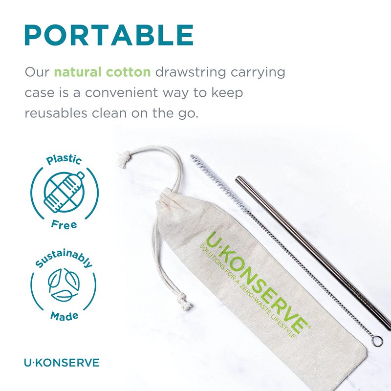U-Konserve Stainless Steel Straws 8.5" (Set of 2) - Metal Straws - Reusable Drinking Straws - Dishwasher Safe - Eco Friendly, Plastic Free and BPA Free