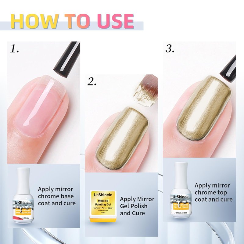 - 【Chrome Metallic Painting Gel】The nail polish ensure a smooth mirror effect. Different from other nail polish, ours is a metallic and glossy, creating high-gloss mirror effects on nails. A whole new attempt to give you a shining fingernail of your dream. The metall nail painting gel is suitable for all seasons, making your nails looks gorgeous.