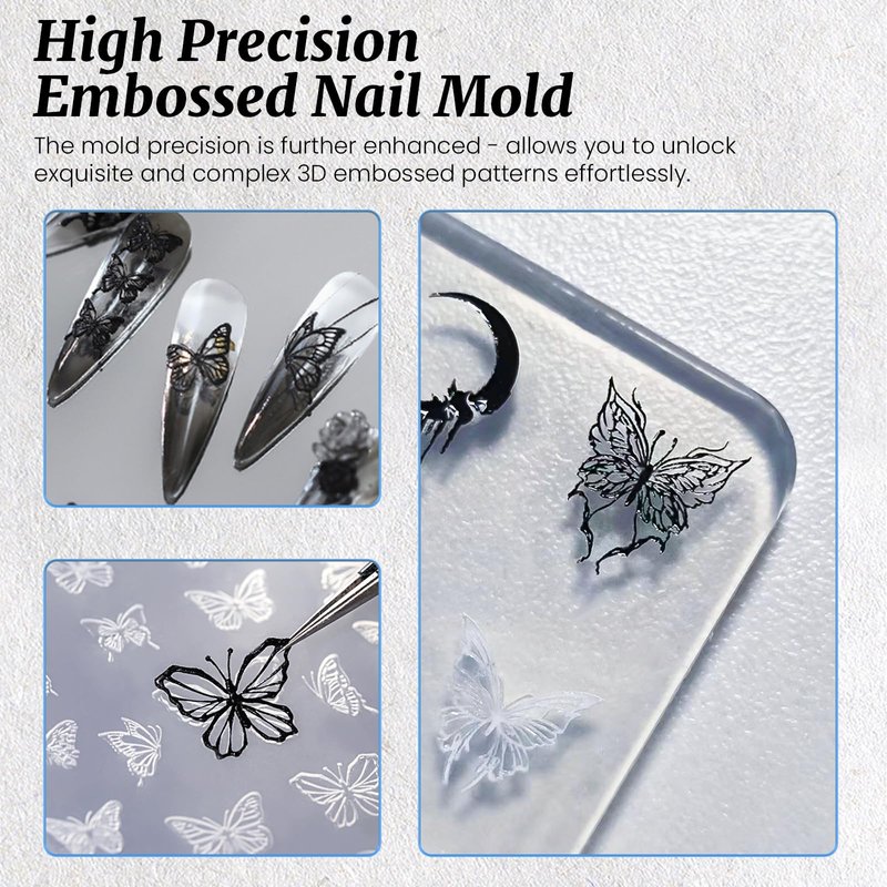 - 【High Precision Embossed Nail Mold】With the silicone nail mold, you can achieve fine-detailed nail art designs without the need for hand-painting. The high precision mold allows you to unlock exquisite and complex 3D embossed patterns effortlessly, taking your nail art to the next level.