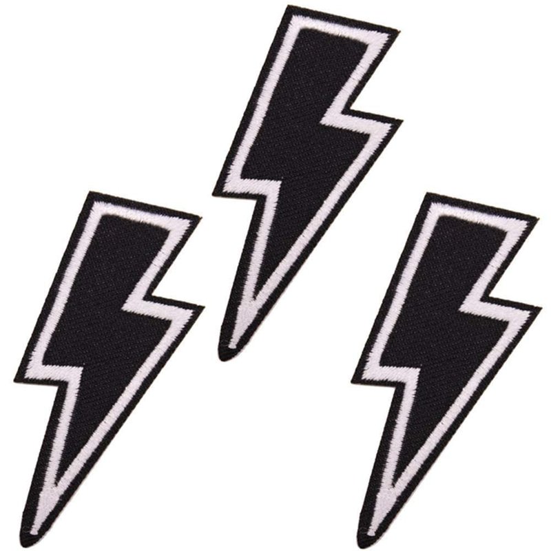 U-Sky Iron on Patches for Motorcycle Jackets, 3pcs Black Lightning Iron-on Patch, Sew on Appliques for Clothes Backpacks Jeans Bags Bedsheets to Cover Logo Rip Size 2.5x0.8inch