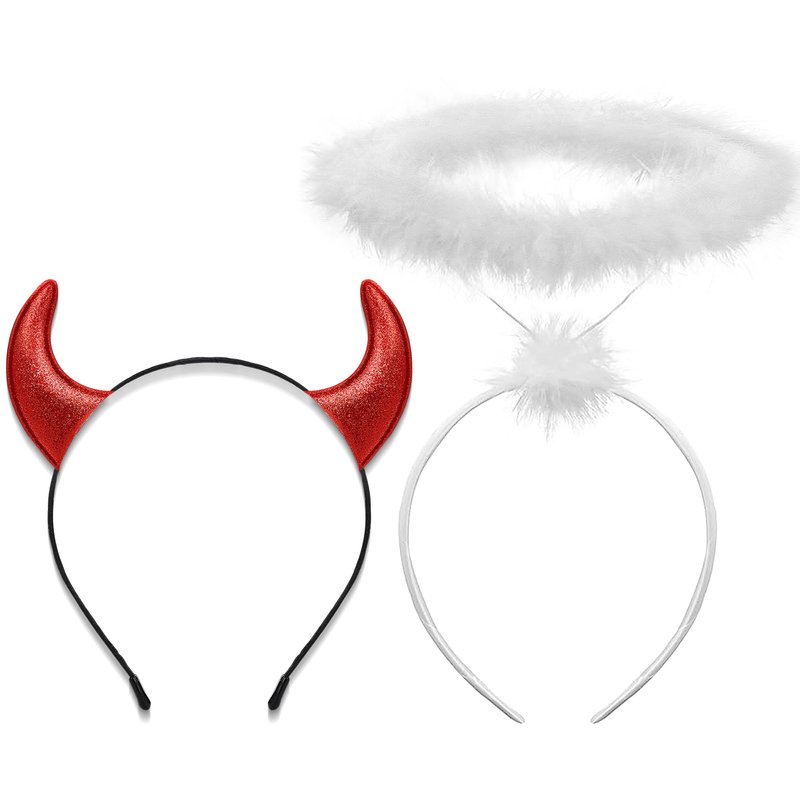 - 😈[ANGEL DEVIL COSTUME SET] This angel halo and devil horns headband set includes 1pcs white angel halo headband and 1pcs red devil horns. You will get two identities at once, and this versatile angel & devil costume accessory is perfect for Halloween, cosplay event and other occasions.