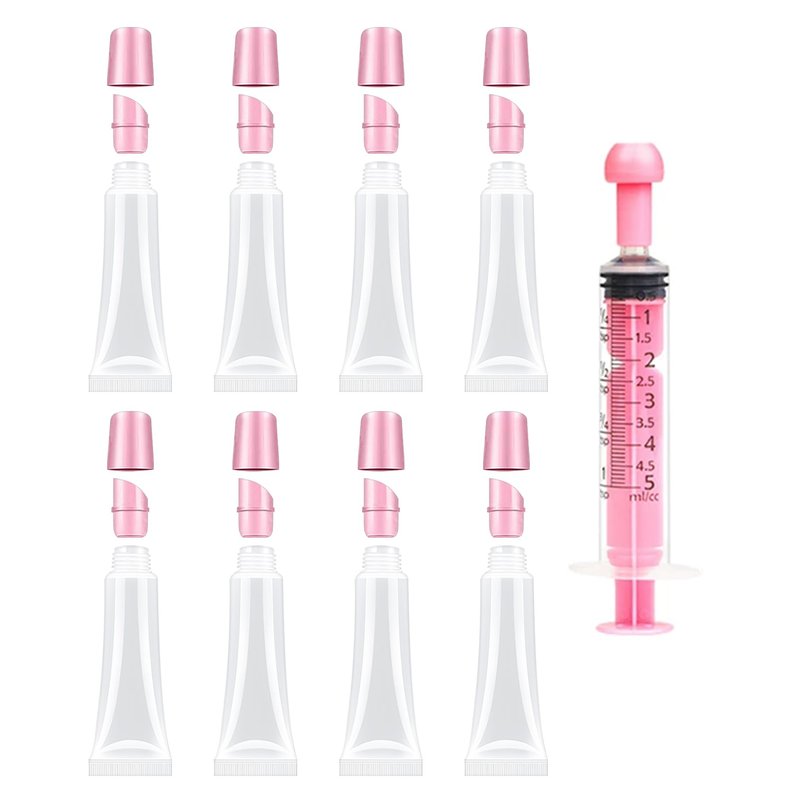 uadbau 8PCS Empty Lip Gloss Tubes - 10ml Clear Lip Balm Tubes with 5ml Syringes - Refillable Squeeze Tubes for Lip Gloss - Mini Cosmetic Soft Tubes for DIY Lip Gloss and Travel Toiletries