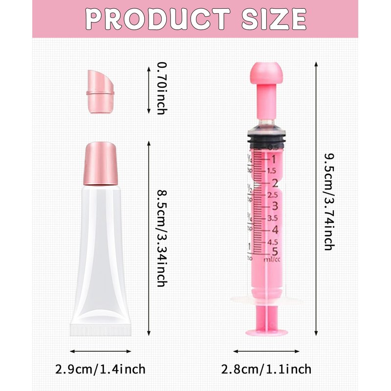 - The included syringe makes it easy to transfer lip gloss or other beauty products into the containers. Fill the syringe to the indicated scale, and distribute the liquid easily to the bottom of the empty tubes with the longer needle