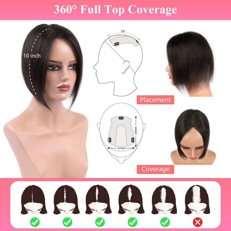 Hair Toppers Human Hair Toppers for Women Real Hair Toppers for Women with Thinning Hair Short Hair Toppers Remy Hair Pieces for Women 10inch Hair Toppers for Women Hair Topper Side Part