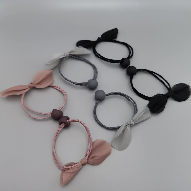 UaiUya 6pcs Bow Hair Tie Elastic Bracelets Korean Hair Ties Bands Ponytail Holder for Women and Girls Accessories,Pink+Grey+Black