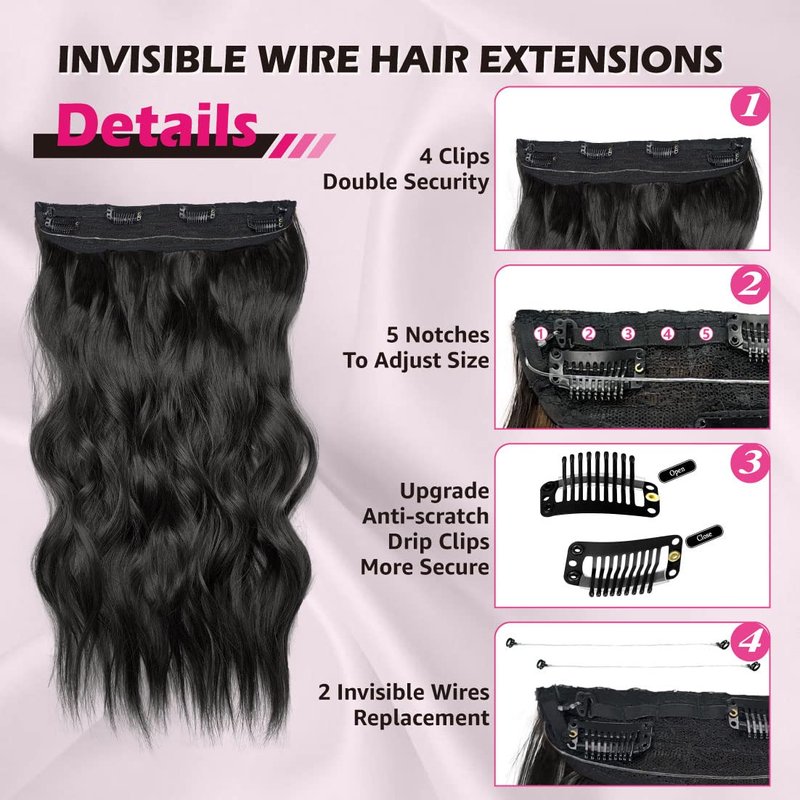 - Easy to Use: Our invisible wire hair extensions are easy to put on and take off, without the need for wig caps or straps. With a 5-level adjustable loop, you can tighten or loosen the wire to fit your head. The extra weft adds fullness and security to the hair extensions, making them perfect for quick and easy hairstyle changes.