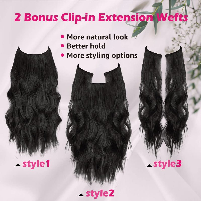 - Versatile Styling: Our invisible wire hair extension comes with 2 additional clip-in hair extension wefts, allowing you to create various styles and versatile styling options. Use 1 or 2 for a light effect, or 3 for a fuller effect, and blend them seamlessly around your face.