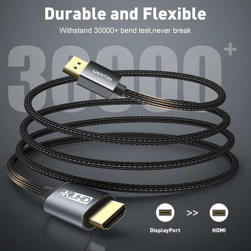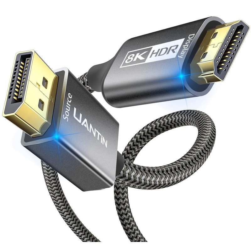 UANTIN DisplayPort 1.4 to HDMI 2.1 Cable (8K@60Hz,4K@120Hz,2K@144Hz) Uni-Directional 6FT DP (Source) to HDMI (Monitor) Braided Cord Support HDCP2.3/HDR10/DSC for AMD, NVIDIA