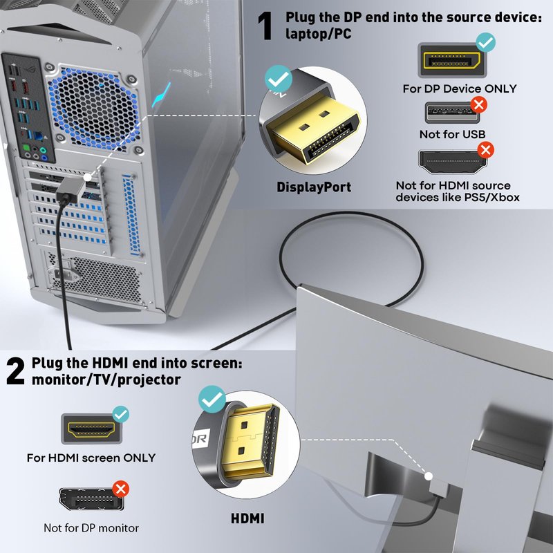 - Model Number: DisplayPort 1.4 to HDMI 2.1 Cable