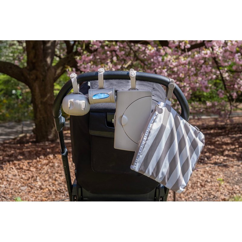 - TRENDY: Fashionably designed with gray stripes pattern for contemporary parents on-the-go