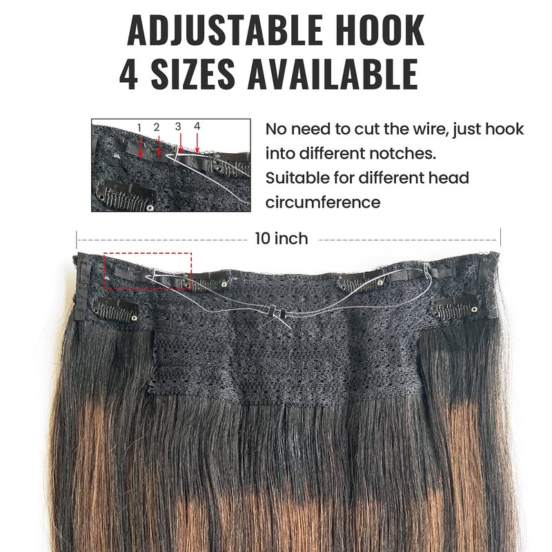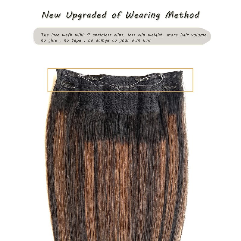 - 【More Comfortable & Lighter】-- Compare with traditional hair extensions, invisible wire human hair extensions is more easy to wear and remove. Invisible wire hair extensions is one piece 10 inch width hair weft linked by a transparent wire, friendly to any head sizes,(petite,medium large )by adjusting the transparent wire. 2 removable clips and extra 2 replacement fish lines (11 inch length) as free accessories provided. You can use 2 removable clips to double fix the hola extensions if need.