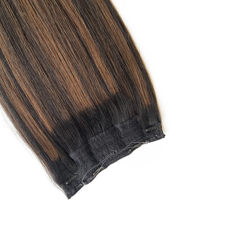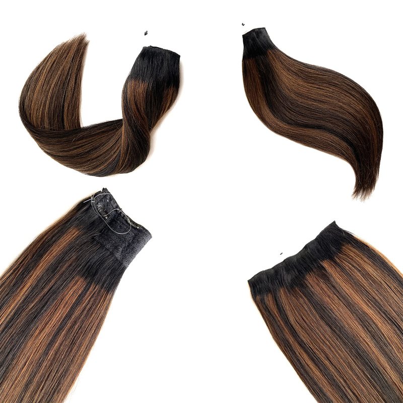 - 【Perfect Color Match & Style Easily】-- #1BT6P1B is ombre natural black hair fading to chestnut brown highlights balayage halo extensions, latest color matching effect. No move hair- gradient color effect. Slightly swayed hair- highlighted color effects. Fluctuating hair- mixing ombre effect. More natural and fascinating color visual impact.
