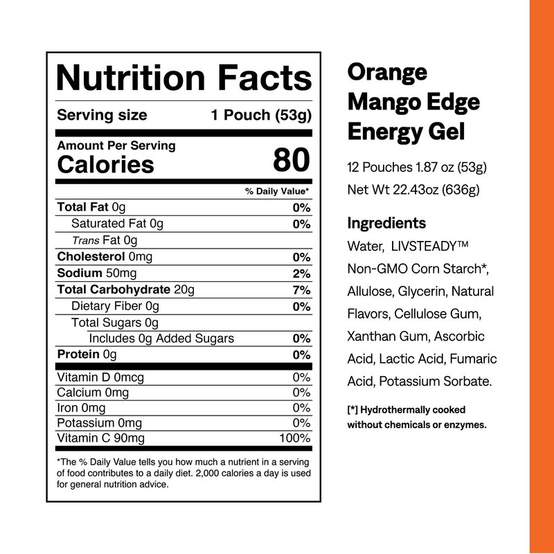 UCAN Edge Energy Gel Shots, Orange Mango (12, 2 Ounce Packets) for Running, Training, Workouts, Fitness, Cycling, Crossfit | Sugar-Free, Vegan, & Keto Friendly