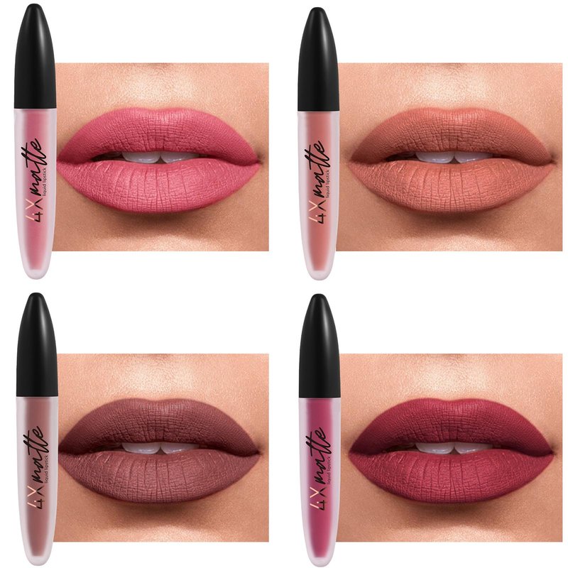 4 Pcs/Set Velvet Matte Liquid Lipstick Makeup Classic Waterproof Long Lasting Smooth Soft Reach Colors Full Lips Gloss For Women Gift