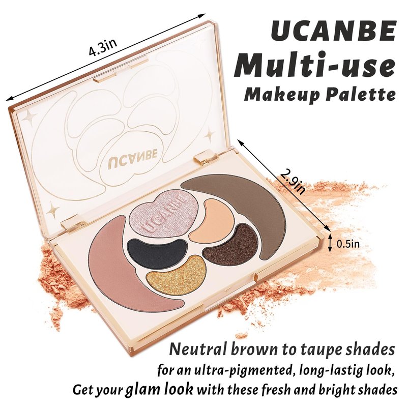 - UCANBE Multi Usage Makeup Palette - Featuring 3 matte and 1 shimmer shades eyshadow + 1 pink blush + 1 heart shape illuminator highlighter + 1 matte bronzer contour to create unique and beautiful face makeup looks from natural looking makeup to smokey eyes looks in one swipe. Create versatile looks with ease, perfect for both makeup beginners and professionals.