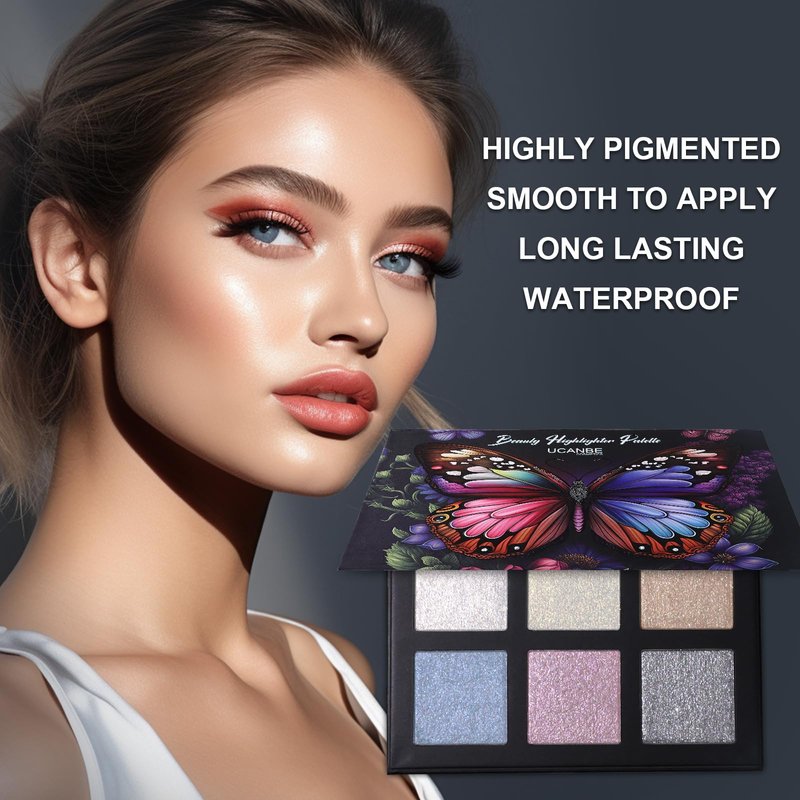 UCANBE 6 Colors Beauty Highlighter Palette Colors include: sliver, beige, purple, blue, pearl, golden pearl