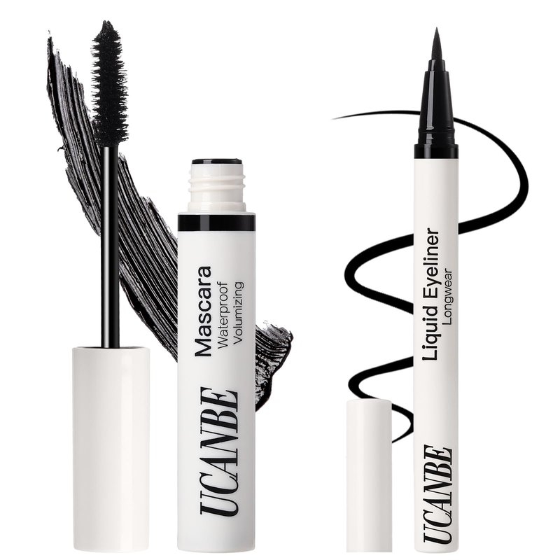 UCANBE Black Mascara and Liquid Eyeliner Set, Waterproof Colored Eye Makeup Duo - Enhance Your Gaze with Natural Lasting Lift & Curl for Lashes and Pigmented Smudge-Proof Eye Liner