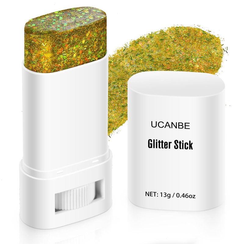 UCANBE Gold Body Glitter, Face Glitter Stick for Singer Concerts Music Festival, Chunky Glitter Makeup Rave Accessories for Body Face Hair Eyes Lip, Sparkling Mermaid Sequins for Women