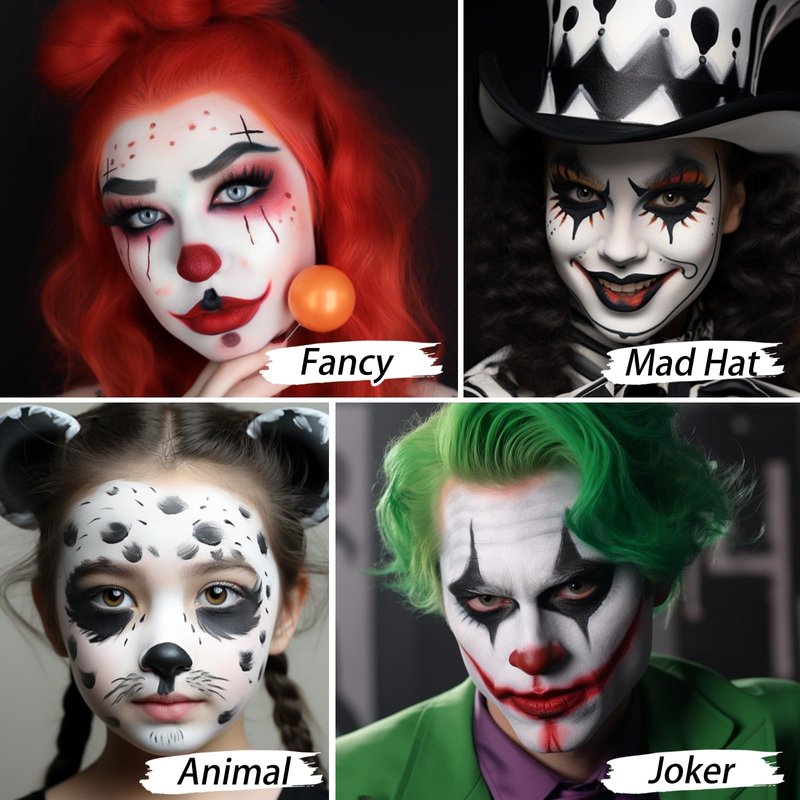 - - Our white face and body paint, with silky foundation-like texture, is easy to use and will give a full coverage. Easy to apply and blend for various fantastic makeup looks, such as classic clown or Joker makeup, pale vampire Makeup, ghost makeup, pop art makeup, skull or skeleton costume makeup.White makeup to use alone or mix with other colors for all Halloween makeup.