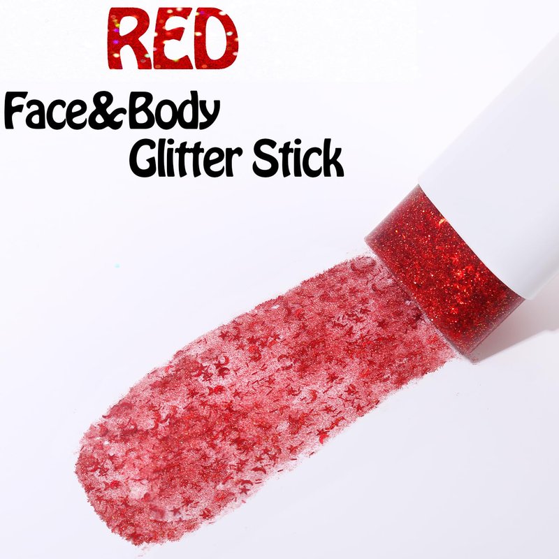 UCANBE Red Body Glitter, Face Glitter Stick for Singer Concerts Music Festival, Chunky Glitter Makeup Rave Accessories for Body Face Hair Eyes Lip, Sparkling Mermaid Sequins for Women
