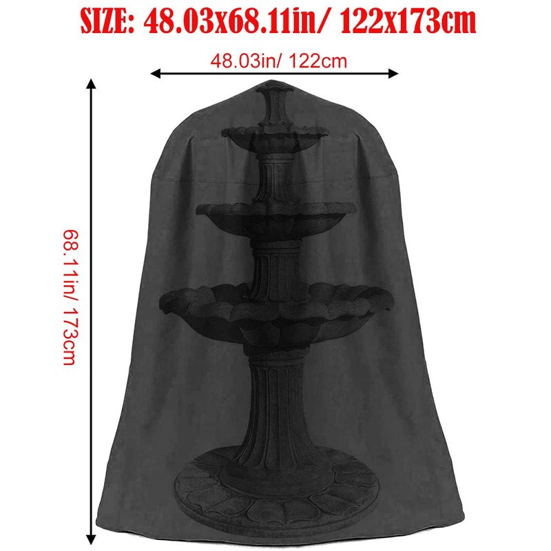 - 【Size(DxH)】48.03x68.11in/ 122x173cm, made to fit tiered fountains with round base, the larger diameter fitting around largest tier. We recommend you measuring your fountain to choose the size that fits best.