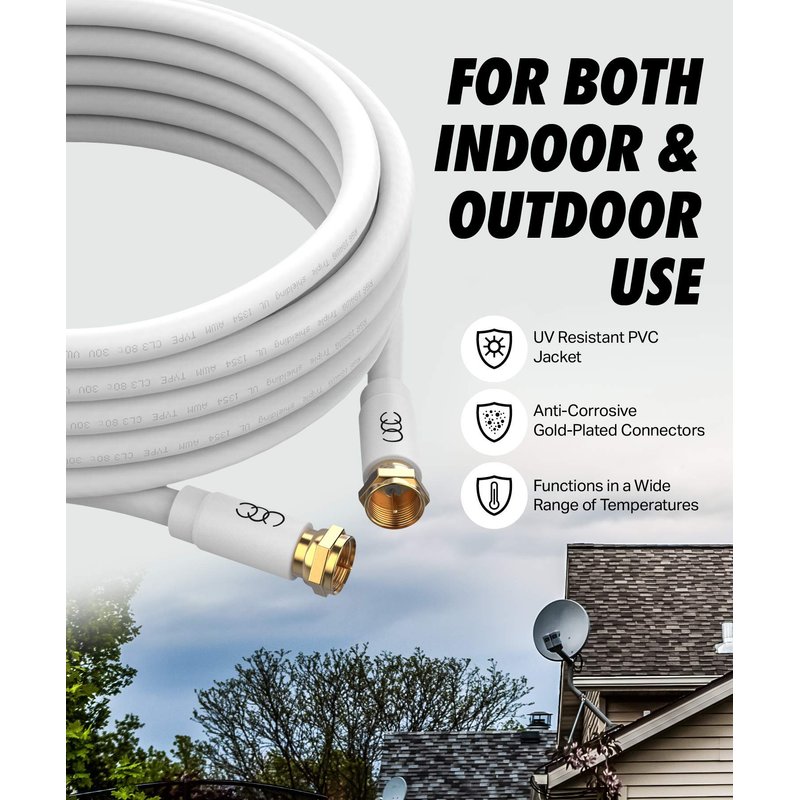 - SUITABLE ANYWHERE - Triple Shielded RG6 coaxial cable perfect for outdoor or indoor use. These Triple Shielded CL3 cable offers protection from electric shock which is made to carry more voltage.