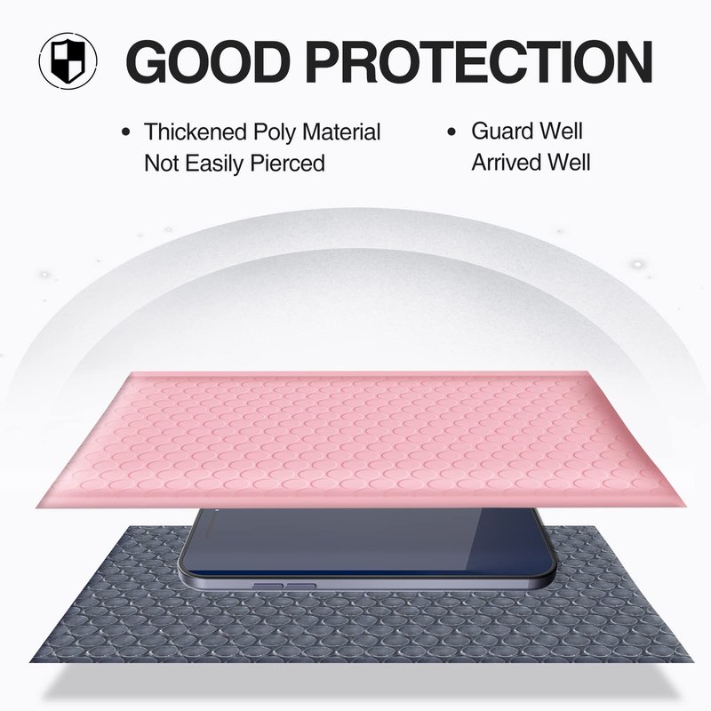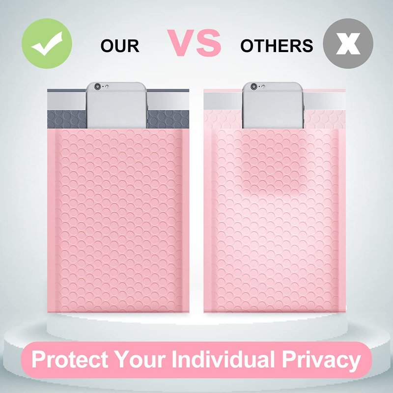 UCGOU 4x8" Light Pink Bubble Mailers 50pcsWe UCGOU is the professional manufacturer specializing in producing all sorts of poly mailers and bubble mailers. Sustainable innovation is our unremitting pursuit. Having advanced technology and equipment, we are dedicated to offering packaging and shipping solutions to our customers with excellent products and service. Padded Envelopes Protection Lined with bubble, Bubble mailers seal well and the padding is sufficient. The bubble mailer envelopes provid more protection during transit as compared to basic poly mailers and don't add too much bulk, as a result the shipping is so much better than the complicated larger packages. Enhence Company Image and Your BrandTape, wrapping film and corrugated cardboard box......This is too much trouble when you prepare to ship somethings. It's time to say bye to the troublesome!! Come to UCGOU! Send your package in clean, simple but grand style which would help to upgrade your company professional image. Believe us. Bubble mailers with bright and pure color will allow customers to easily identify their orders from your shop when they arrive in their mail.