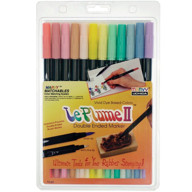 Uchida Of America Uchida 1122-12B Le Plume II Double-Ended Markers with Brush and Fine Tips, Pastel, Set of 12