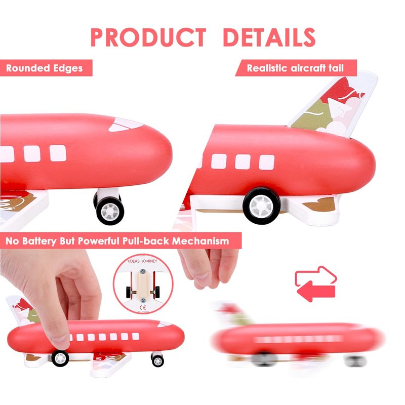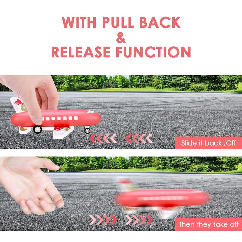 - [EASY PULL-BACK & GO] : The toy airplane have a pull-back function. Just slightly pull back the aeroplane toy and release it, it rushes across the floor. No batteries required, just pure mechanical fun, safe and environmentally friendly. Provides endless fun and excitement for kids of all ages.