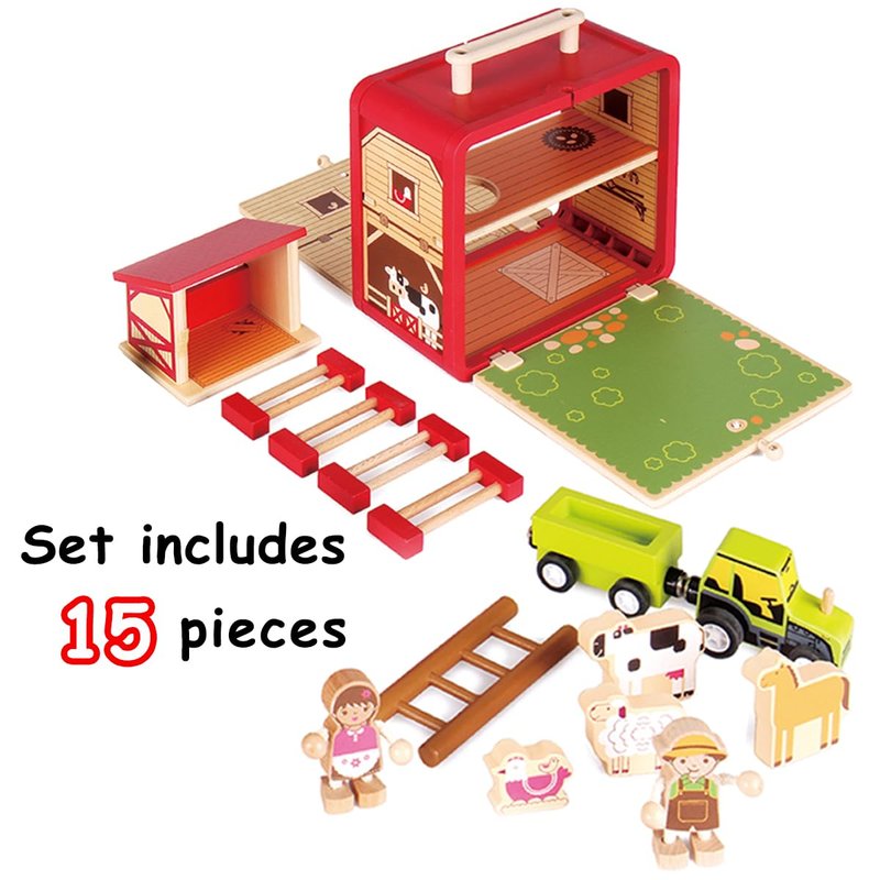 Udeas Wooden Construction Set Toys Animal Farm Toys with Wooden Figurines Storage Toys for Age 3+ Children