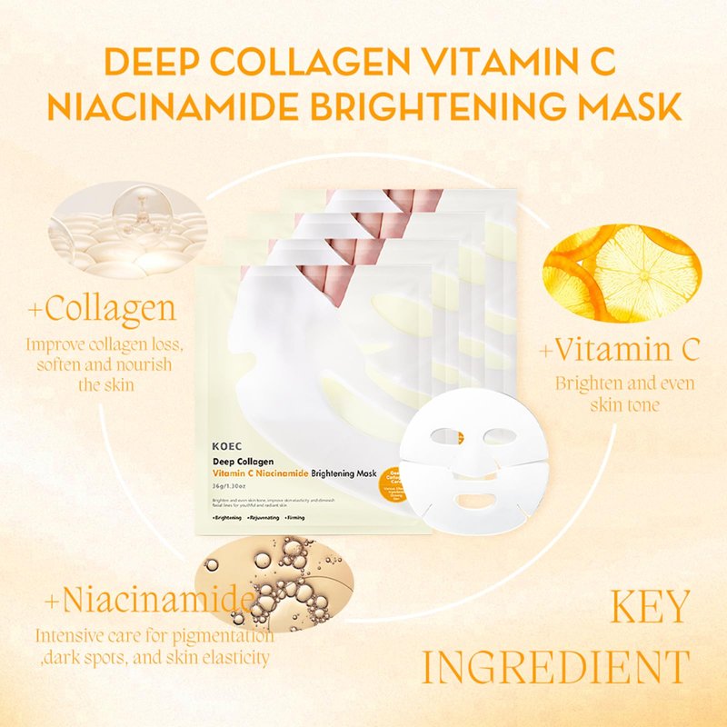 Ueseinl 4 Pack Deep Hydrating Collagen Face Mask,Overnight Anti-Aging Moisturizing Sheet Mask,Firming,Korean Skincare and Nourishing for Fine Lines and Aging, Deep Moisture Therapy (Vitamin C)