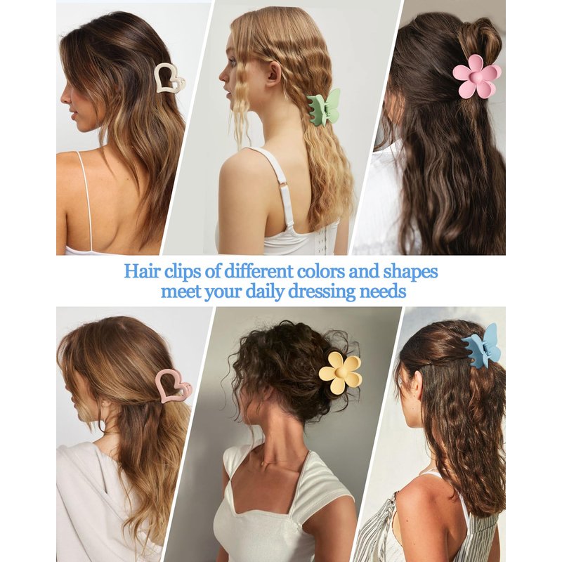 Ufgin 6 Pcs Heart Hair Claw Clips for Women-Medium Matte Nonslip Hair Jaw Clips Heart Hair Clips for Thin Thick Hair Cute Hair Styling Accessories for Women and Girls(flower1+heart1+butterfly1)
