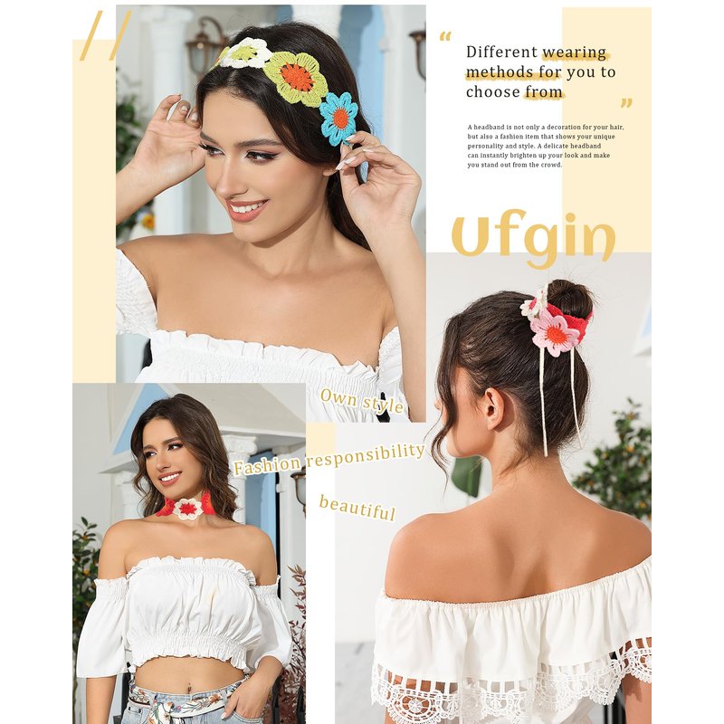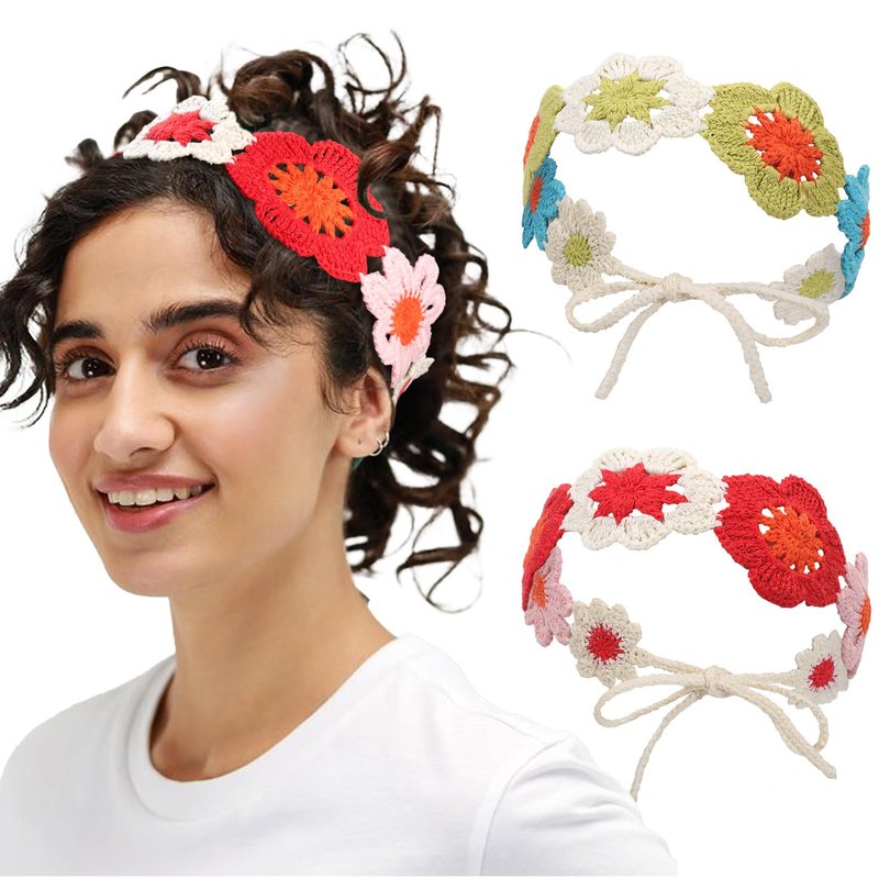 - 🌼【Handmade Crochet Headband】This hippie headband is made of knitted fabric and is purely handmade with exquisite workmanship. Soft, elastic, breathable, comfortable for a long time. The headband features a delicate floral braided design that blends retro and modern styles to make you look more fashionable, charming and elegant.